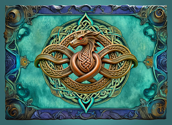 A colorful tablet engraved with imagery of wicked serpent beasts is surrounded by intricate Celtic knots that lend an ancient air to this enchanting panel. Digitally printed, 31" panel, 'Celtic Dragon Engraving' by the Rubin Design Studio, designed exclusively for eQuilter.