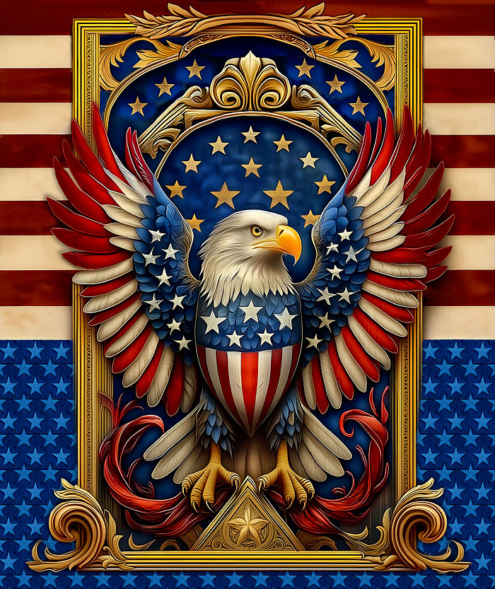 An emblem of a Bald Eagle emerges from the American flag itself in a breathtaking expression of freedom across the proudly patriotic panel. Digitally printed, 36" panel, 'American Eagle' by the Rubin Design Studio, designed exclusively for eQuilter.