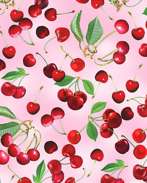 Fresh cherries picked straight off the tree evoke a tart sweetness in this delectable design. Digitally printed, larger cherries are about 1", 'Sweet Cherries' from the 'Cherry Hill' collection by Kanvas Studio for Benartex Fabrics.