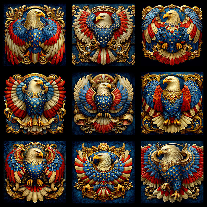 Blocks contain emblems of Bald Eagles emerging from the American flag itself in breathtaking expressions of freedom across the proudly patriotic panel. Digitally printed, 43" panel, includes nine 13" x 13" frames, 'Patriotic Eagle Blocks' by the Rubin Design Studio, designed exclusively for eQuilter.