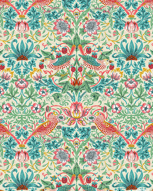 The timeless designs of William Morris are together again in this quaint collection. Larger birds are about 1-3/4", 'Mini Strawberry Thief' from the 'Bedford Park' collection by Morris & Co. for Free Spirit.