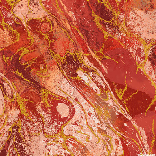 Like a roiling mass of molten magma, vibrant spumes meld and collide in vivid hues within the earthen beauty of richly marbleized textures. Blender, with gold metallic, from the 'Marbled Earth' collection by Painted Sky Studio for Benartex Fabrics.