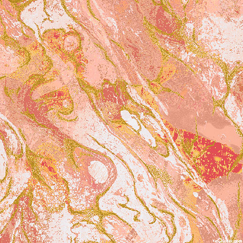 Like a roiling mass of molten magma, vibrant spumes meld and collide in vivid hues within the earthen beauty of richly marbleized textures. Blender, with gold metallic, from the 'Marbled Earth' collection by Painted Sky Studio for Benartex Fabrics.