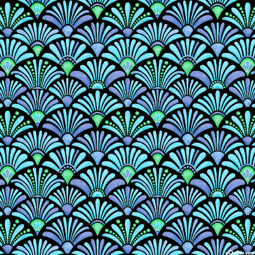 Scalloped fans reminiscent of garden florals repeat endlessly across the design. Larger fans are about 1-1/2", 'Fans' from the 'Blooming Crystals' collection by Laura Coia for Benartex Fabrics.