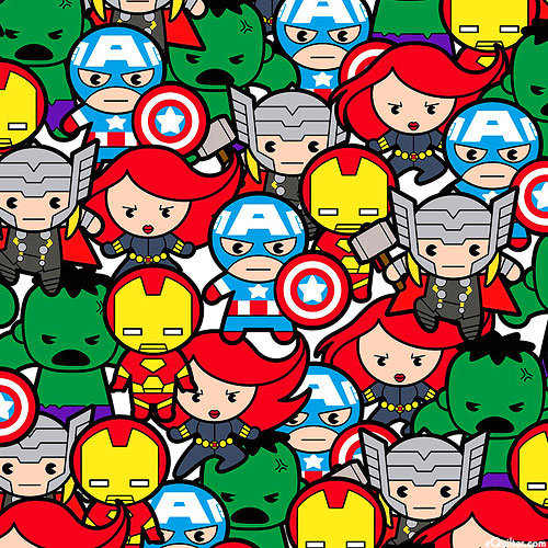Iconic characters from the Marvel Avengers are depicted across the design including Captain America, The Hulk, Iron Man, Thor, and Black Widow. Larger characters are about 3", 'Pop Avengers' ©Marvel by Springs Creative Products Group, LLC. Marvel stipulates that this product cannot be shipped outside the USA, Puerto Rico and Canada. It is intended for home use only, not for manufacturing.