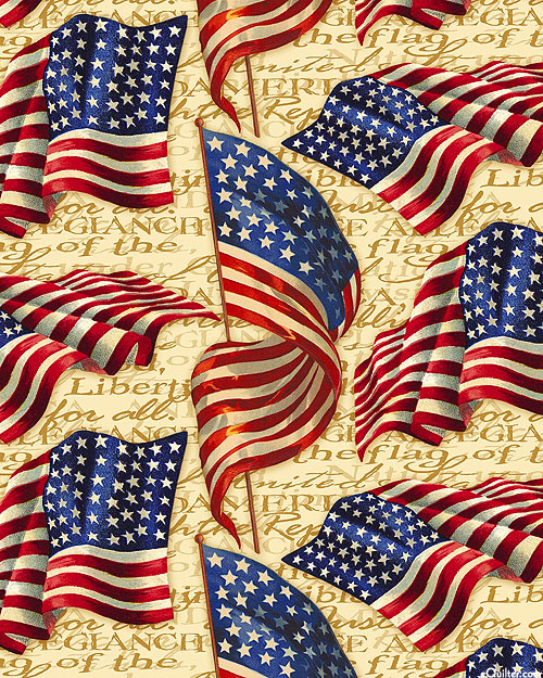In this patriotic piece, American flags billowing in the wind are depicted in front of excerpts from the Pledge of Allegiance. Larger flags are about 6-1/4", 'We Pledge Allegiance' by Susan Winget for Springs. Sold for noncommercial home use only. Other uses prohibited.
