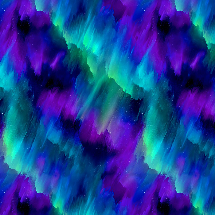 The enchanting lights of the Aurora Borealis dance brightly against the darkness of the night sky. 108" wide quilt backing, digitally printed, larger aurora clouds are about 9", 'Aurora Shower Backing' by the Rubin Design Studio, designed exclusively for eQuilter.