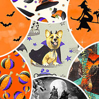 Halloween motifs featuring whimsical costumes, haunted houses, and wicked witches are sure to lend a festive charm to your next project! Fabrics may vary slightly from image shown.