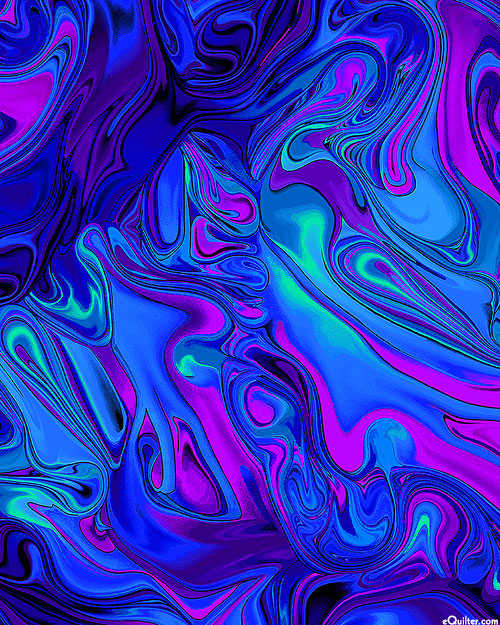 Like a roiling mass of molten magma, vibrant spumes meld and collide in vivid hues within vibrant liquid textures. Digitally printed, blender, 'Swirl Marble' from the 'Midnight Bloom' collection by Chong-A Hwang for Timeless Treasures.