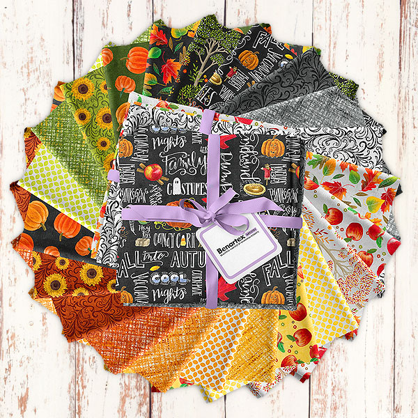 A wholesome spread of happy harvest motifs come together in this delightful pre-cut!'Beautiful Harvest' collection fat quarter pack by Shannon Roberts for Benartex Fabrics. Pack includes twenty-two fat quarters.