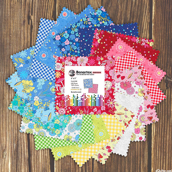 Pleasant designs are presented in a variety of options, making a versatile pre-cut that can be used in a wide array of projects! 'Tiny Secrets' collection charm pack by Pat Sloan for Benartex Fabrics, pack includes forty-two 5" x 5" squares.