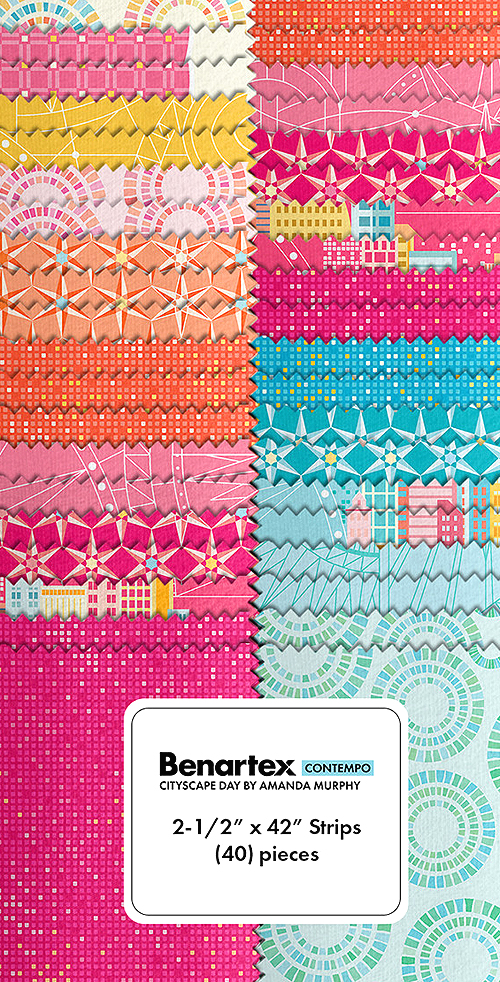Depictions of a concrete jungle during the day are accented by lively patterns full of energy in this fun pre-cut.'Cityscape Day' collection strip pack by Amanda Murphy for Benartex Fabrics, pack includes forty 2-1/2" x 42" strips.