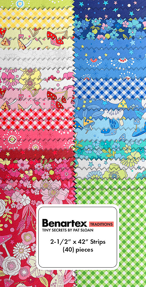 Pleasant designs are presented in a variety of options, making a versatile pre-cut that can be used in a wide array of projects! 'Tiny Secrets' collection strip pack by Pat Sloan for Benartex Fabrics, pack includes forty 2-1/2" x 42" strips.
