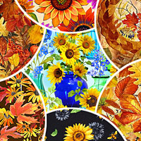 A collection of harvest motifs including sunflowers, fallen leaves, and woven wreaths are sure to lend a seasonal charm to your next project! Fabrics may vary slightly from image shown.