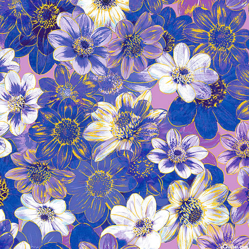 Benartex Fabrics Metallic Impressions - In Bloom - Blueberry/Gold