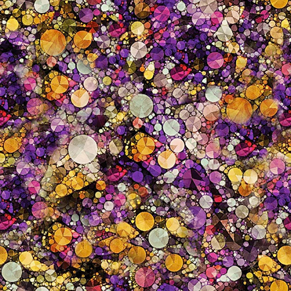 A mesmerizing mosaic of bubbly round shapes coalesces into a dreamy garden scene across this delightful design. Larger circles are about 9/16", 'Sparkle' from the 'Cat Artistry' collection by Peggy Collins for Benartex Fabrics.