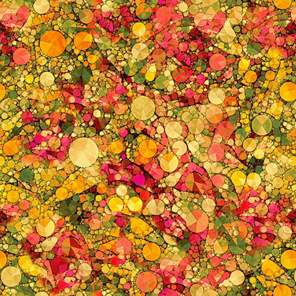 A mesmerizing mosaic of bubbly round shapes coalesces into a dreamy garden scene across this delightful design. Larger circles are about 9/16", 'Sparkle' from the 'Cat Artistry' collection by Peggy Collins for Benartex Fabrics.