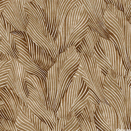 Striped textures ebb and flow into one another like rolling hills across this enchanting tonal. 108" wide quilt backing, larger variegated leaves are about 7", from the 'Earth Tone 108"' collection by P&B Textiles.