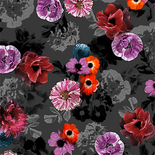 A lush landscape of flourishing flowers coalesce to create a captivating garden gala of texture and tone. Larger flowers are about 1-1/2", from the 'Moon Flower' collection by P&B Textiles.