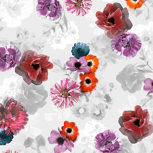 A lush landscape of flourishing flowers coalesce to create a captivating garden gala of texture and tone. Larger flowers are about 1-1/2", from the 'Moon Flower' collection by P&B Textiles.