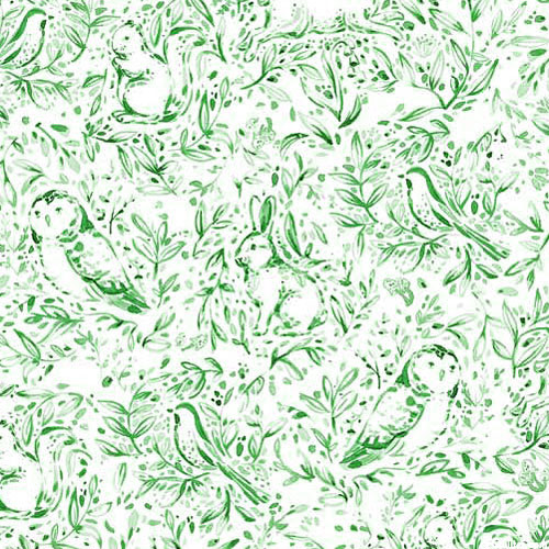 A curious cast of forest friends emerge from the verdant scenery of the woods including owls, rabbits, squirrels, and birds. Animals are about 2", from the 'Misty Vistas' collection by Katrina Pete of Wild Apple Graphics for P&B Textiles.