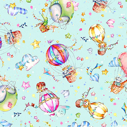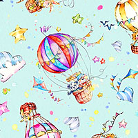 P&B Textiles Whiskerville - Hot Air Balloons - Robin's Egg Blue