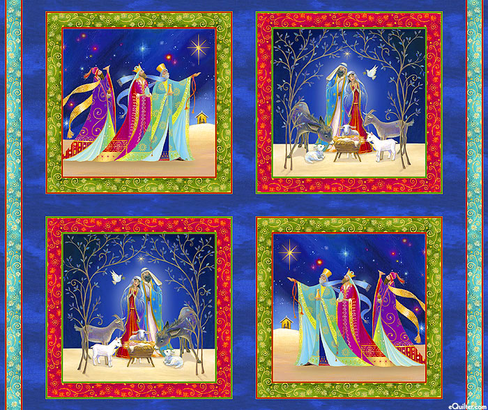 Digitally printed, 36" panel, panel has four frames about 16-1/2", from the 'Christ Is Born' collection by Sarah Summers for Quilting Treasures.
