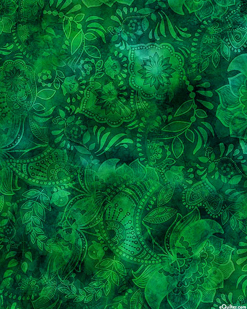 A lush landscape of flourishing florals and leafy vines coalesce to bring life to this tranquil tonal design. Digitally printed, larger flower designs are about 2-3/4", 'Fairy Tale'. Printed in the USA.
