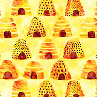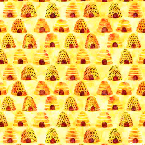Rows of painterly beehives are depicted across the design in an elegant expression of nature's charm. Digitally printed, larger beehives are about 3/4", from the 'Queen Bee' collection by Dan Morris for Quilting Treasures.