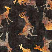 Silhouettes of the members of a herd of deer are scattered across a mottled background in this wild woodland-themed design. Digitally printed, larger deer are about 1-1/2", from the 'Buck Wild' collection by Dan Morris for Quilting Treasures.