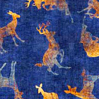 Silhouettes of the members of a herd of deer are scattered across a mottled background in this wild woodland-themed design. Digitally printed, larger deer are about 1-1/2", from the 'Buck Wild' collection by Dan Morris for Quilting Treasures.