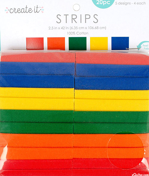 Bright solids are presented in a variety of vivid colors, making a versatile pre-cut that can be used in a wide array of projects! 'Create It - Bright Solid' strip pack by Fabric Editions, pack includes twenty 2-1/2" x 42" strips.