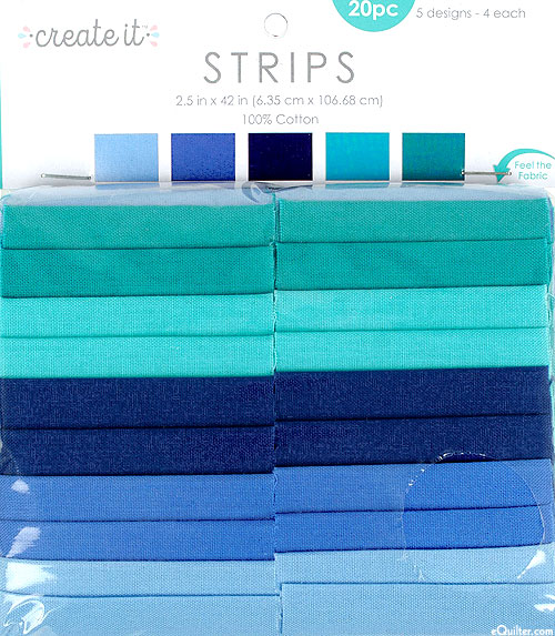 Blue solids are presented in a variety of vivid colors, making a versatile pre-cut that can be used in a wide array of projects! 'Create It - Blue Solid' strip pack by Fabric Editions, pack includes twenty 2-1/2" x 42" strips.