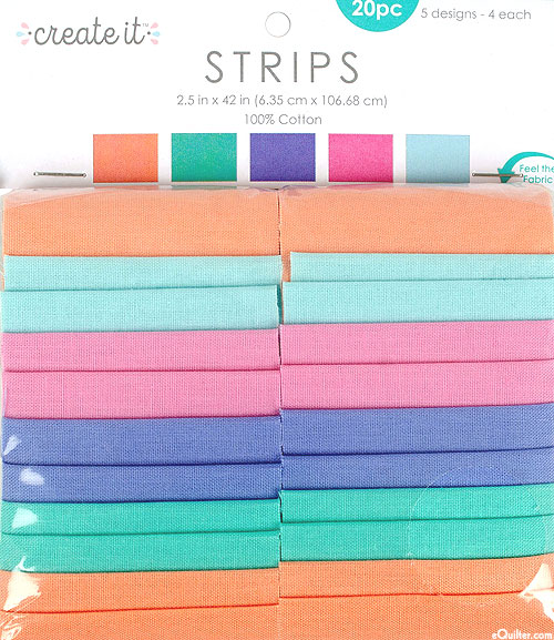 Lush pastel solids are presented in a variety of vivid colors, making a versatile pre-cut that can be used in a wide array of projects! 'Create It - Pastel Solid' strip pack by Fabric Editions, pack includes twenty 2-1/2" x 42" strips.