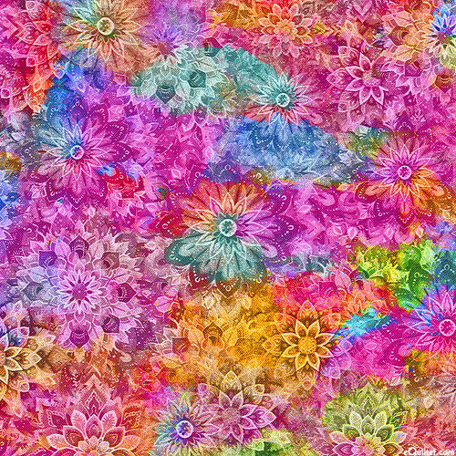 Geometric florals coalesce in a kaleidoscopic cascade of color and shadow across this vibrant design. Digitally printed, larger medallions are about 2-1/2", 'Dancin' Dahlias'. Printed in the USA.
