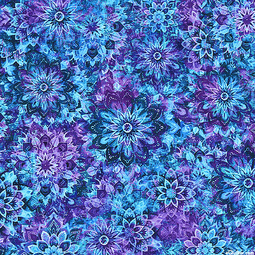 Geometric florals coalesce in a kaleidoscopic cascade of color and shadow across this vibrant design. Digitally printed, larger medallions are about 2-1/2", 'Dancin' Dahlias'. Printed in the USA.