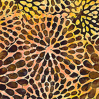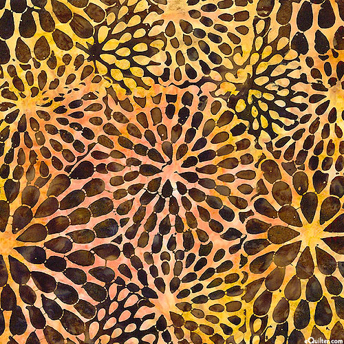 Large, graphic dahlias bloom prolifically over the surface of this bold batik, giving the fabric a pop modern edge. Batik, larger bursts are about 6", 'Dahlias' from the 'Tonga Hayride' collection by Timeless Treasures.