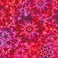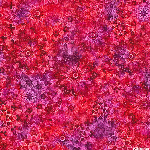 Geometric florals coalesce in a kaleidoscopic cascade of color and shadow across this vibrant design. Digitally printed, larger medallions are about 2-1/2", 'Dancin' Dahlias'. Printed in the USA.