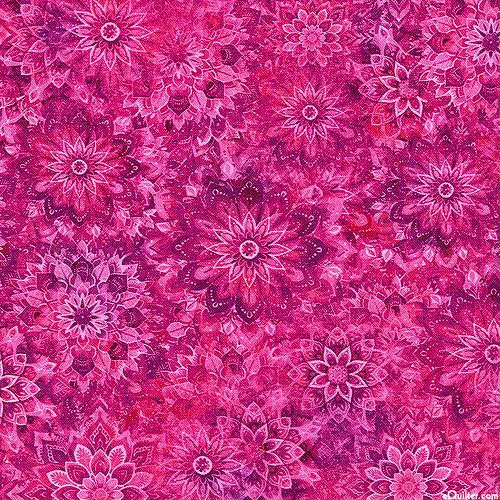 Geometric florals coalesce in a kaleidoscopic cascade of color and shadow across this vibrant design. Digitally printed, larger medallions are about 2-1/2", 'Dancin' Dahlias'. Printed in the USA.