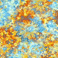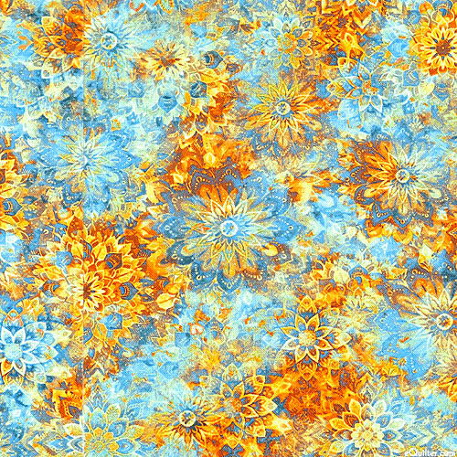 Geometric florals coalesce in a kaleidoscopic cascade of color and shadow across this vibrant design. Digitally printed, larger medallions are about 2-1/2", 'Dancin' Dahlias'. Printed in the USA.