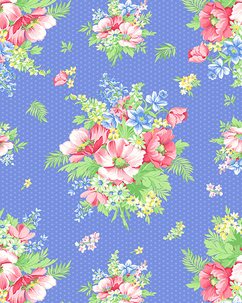 Lush bouquets full of colorful blossoms depicted against a background of polka dots lend a natural charm to this elegant print. Larger bouquets are about 7-1/2", 'Charming' from the 'April's Garden' collection by April Cornell for Benartex Fabrics.