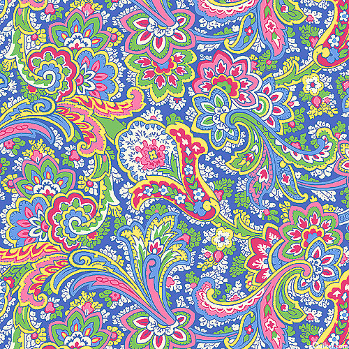 A mesmerizing mosaic of multicolored paisleys coalesces to create a stunning design of rich and vivid hues.Larger paisley shapes are about 2", 'Khanti Paisley' from the 'April's Garden' collection by April Cornell for Benartex Fabrics.