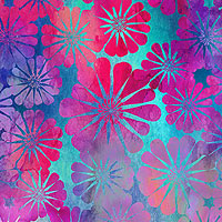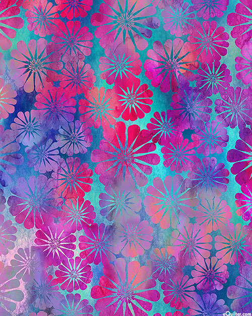 A cascade of misty rainbow flowers take on a watercolor texture, adding to the unique artistic quality of the design. Digitally printed, larger flowers are about 3", from the 'Impressions' collection by Jason Yenter for In The Beginning Fabrics.