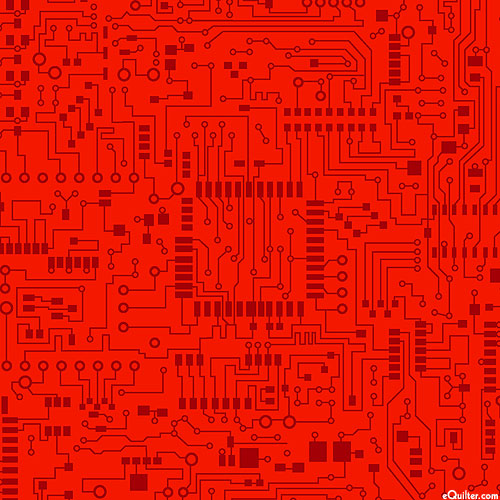 Studio E Fabrics Data Point - Circuit Board - Flame Red