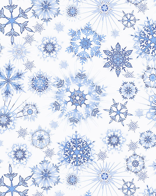 Large scale crystalline snowflakes fall gently over an atmospheric ground, shimmering with an extra touch of silver metallic in this icy fresh design. Larger snowflakes are about 4 1/2", with silver metallic glitter, from Timeless Treasures.