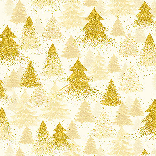A festive forest full of evergreen are accented in gold metallic across this elegant Christmas design. Larger trees are about 1-1/2", with gold metallic, from the 'Merry Christmas' collection by Timeless Treasures.