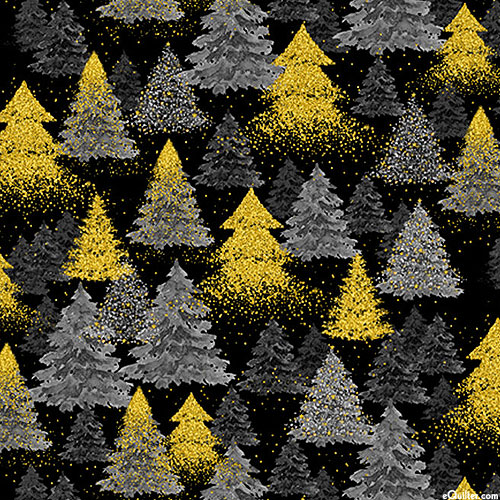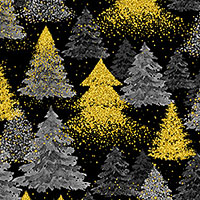 A festive forest full of evergreen are accented in gold metallic across this elegant Christmas design. Larger trees are about 1-1/2", with gold metallic, from the 'Merry Christmas' collection by Timeless Treasures.