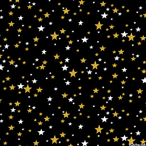 Small stars shimmer and shine across this frigid winter sky. Larger stars are about 3/8", with gold metallic, from the 'Merry Christmas' collection by Timeless Treasures.