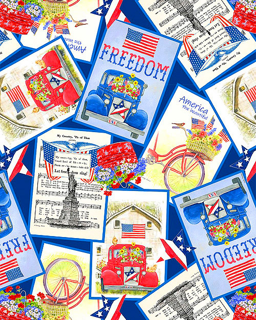 Studio E Fabrics Liberty Barn - Americana Posters - Sapphire Blue