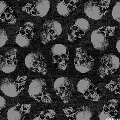 Wicked skulls are tossed against a mottled background in this fun and festive Halloween-themed design. Digitally printed, larger skulls are about 1", from the 'Fear Factory' collection by Lena Art Studio for Studio E Fabrics.